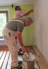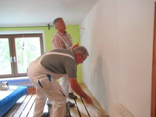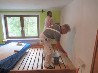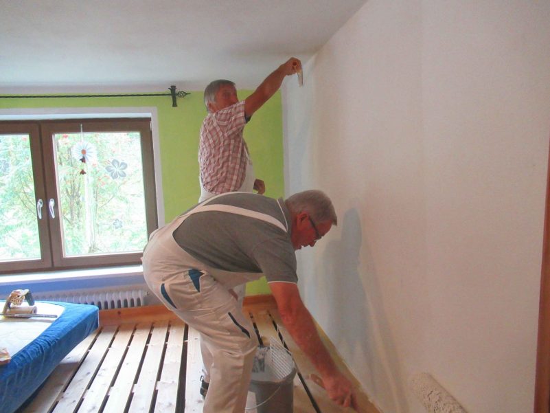 Foto/s: Hötzelsperger – Hüttenwart Herbert Aß und sein Maler-Helfer Paul Panzer bei ihren ehrenamtlichen Arbeiten in der Priener Hütte – Priener Hütte – Geigelstein-Kreuz nahe der Priener Hütte
