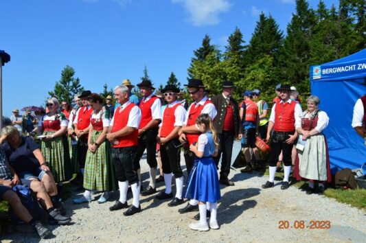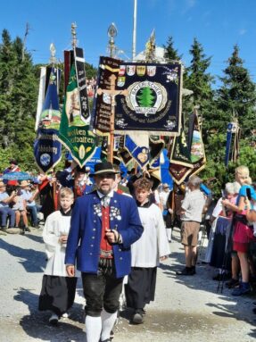 Die älteste Bergfeier des Bayerischen Waldes liege den Waidlern besonders am Herzen, attestierte der Präsident des Bayerischen Waldvereins, Sebastian Gruber. „Sind wir am heutigen Tag dankbar, demütig, freudvoll und auch stolz auf unsere Heimat.“ Es gehe bei der Arberkirchweih nicht um Volkstümelei, sondern um Bodenhaftung, ein Gespür für Kultur, Brauchtum, Natur, und alles, was sich an Innovationskraft daraus ableite. Die Staatsregierung unterstütze den Bayerischen Wald maßgeblich bei vielerlei Maßnahmen. „Was man mit Geld nicht bezahlen könne, ist der Zusammenhalt der Menschen“, betonte Gruber. Bekannt sei die Volksweise: „Wisst`s wo mein Hoamad is“. Darin heisse es, „viel schojne Platzerl gibt`s, aber Hoamad grad oane“. Möge von dieser Arberkirchweih Kraft, Zuversicht, Selbstbewusstsein, Stolz und Dankbarkeit ausgehen, wünschte sich Sebastian Gruber.