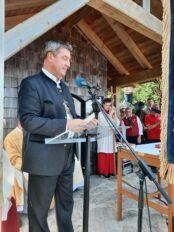 Die Predigt des Arberpfarrers beinhaltete auch froh machende Akzente und war nicht nur voller Sorge erfüllt. Sie habe Mut gemacht. Jeder könne immer und jederzeit umkehren. Es gebe viel Licht, selbst in der allerschwierigsten Zeit. Unglaublich viele Menschen helfen einander. „Wir brauchen eigentlich Mission daheim“, machte Söder bewusst. Der Glaube brauche Gemeinschaft, darum sei auch der Gottesdienst so wichtig. Manche Leute überlegen, Gipfelkreuze abzuschaffen. „Wir in Bayern werden dies nicht tun“, versprach der Ministerpräsident. Sicherlich sei auch in Bayern und Deutschland vieles nicht einfach, aber den Bürgern gehe es besser als 90 Prozent der Menschen auf der Welt.