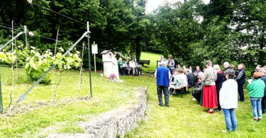 Elisabeth Heider und Tobias Bösl informierten ganz aktuell über die Entdeckungen, die sogar mutmaßen lassen, dass es sich bei den Funden um das Grab der Seligen Irmengard handeln könnte, sie begannen ihre Ausführungen mit: „Die Fraueninsel ist einen vielfältige Denkmallandschaft, sie ist ein Ensemble mit vielen Einzeldenkmälern“. Die jüngste Entdeckung ergab sich im Zuge der Erfassung aller Bodendenkmäler, ihrer Wegführungen und Freiflächen. Bekannt war aus früheren Aufzeichnungen und Plänen, dass es am höchsten Punkt der Fraueninsel am Dorfanger nahe der Tassilo-Linde eine Kirche St. Martin gegeben hat. Diese kam in der Zeit von 1803 bis 1807 im Zuge der Säkularisation wieder weg. Als im vorigen Jahr auf der Fraueninsel ein großes PEACE-Zeichen gepflanzt wurde, da wurde unwissend von den folgenden Entdeckungen genau der Platz oberhalb der früheren Kirche gewählt. Wie die Vertreter des Landesamtes für Denkmalpflege weiter erläuterten, ist der derzeitige Forschungsstand in einer spannenden Entwicklung, die Forschungen werden weitergehen. Für die interessanten Ausführungen bedankte sich Freundeskreis-Vorsitzende Annemarie Biechl bei den beiden Referenten mit einem Chiemseer Klosterlikör.