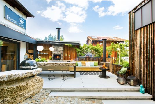Auch exklusive und edle Herde haben Mayer und sein 20-köpfiges Team im Angebot, das nicht innerhalb der eigenen vier Wände Halt macht. „Was sich immer mehr zum Trend entwickelt, sind Herde, Backöfen, Grills und Feuerstellen für den Außenbereich“, berichtet Mayer. Auch die Sommerküchen im Freien liegt absolut im Trend. Selbstverständlich offeriert die Riederinger Hafnerei auch hier jede erdenkliche Variante, auf Wunsch entweder mit Gas oder Holz befeuert.