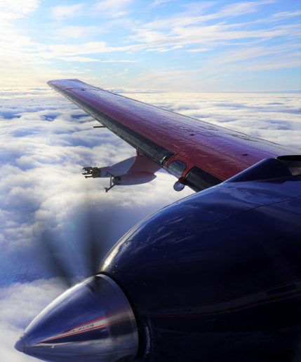 Während Polar 6 das Meereis des Arktischen Ozeans vermisst, konzentriert sich die Crew der Polar 5 auf die Untersuchung der Atmosphäre und der Wolken über dem Arktischen Ozean. Von vorhergehenden Untersuchungen weiß man, dass Wolken maßgeblich zur rasanten Erwärmung der Arktis beitragen. Moderne Atmosphärenmodelle aber unterschätzen bislang den Einfluss der Wolken und simulieren ihn noch zu unpräzise. Aus diesem Grund vermisst das Team aus Forschenden des AWI, des DLR sowie der Universitäten Leipzig, Bremen, Köln, Mainz und Clermont Auvergne die Luftmassen großräumig über dem Arktischen Ozean und untersucht im Detail alle für die Wolkenbildung relevanten Faktoren. “An Bord von Polar 5 messen wir mikrophysikalische Wolkeneigenschaften wie Tropfengrößenverteilung, Phase, Eis- und Flüssigwassergehalt sowie die Eiskristallformen”, erklärt Valerian Hahn vom DLR-Institut für Physik der Atmosphäre. “Ein weiteres Hauptaugenmerk liegt auf arktischen Mischphasenwolken”, ergänzt Manuel Moser desselben Instituts. Die Forschenden folgen bei ihren Messungen in der arktischen Luft unter anderem auch der Route, die zuvor der Forschungseisbrecher Polarstern im Rahmen der MOSAiC-Kampagne genommen hat.
