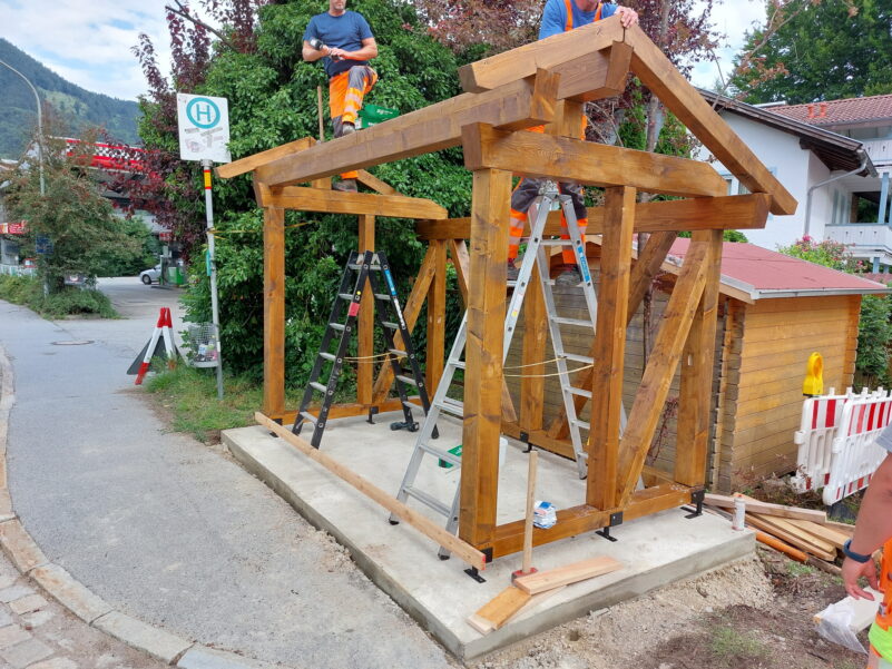 Das einst von Studenten der Technischen Hochschule Rosenheim im Rahmen des Studiums errichtete Buswartehäuschen an der Rosenheimer Straße / Rosenstraße war baufällig.