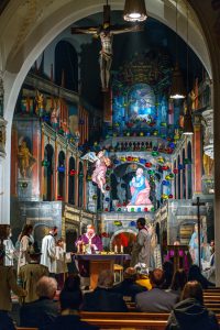 Kardinal Marx feiert Messe zur Aufstellung von barocker Passionsdarstellung und moderner Lichtkunst.