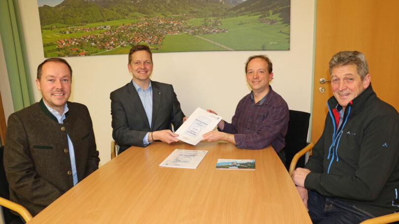 Guido Kugelmann (Zweiter von rechts), vom Regionalen Klimabüro des Deutschen Wetterdienstes in München, übergab Bürgermeister Simon Frank (Dritter von rechts) den Abschlussbericht über die in den Jahren 2021 und 2022 durchgeführten Prüfungen der Luft im Oberen Priental. Die Aschauer Delegation mit Tourismuschef Herbert Reiter (links) und dem Leiter vom gemeindlichen Bauhof Rudi Angermaier (rechts) freute sich den ausgesprochen erfreulichen Prüfbericht im Rathaus entgegenzunehmen. „lm Rahmen der Prädikatisierung konnte bestätigt werden, dass zurzeit im Beurteilungsgebiet von Aschau die lufthygienischen Voraussetzungen für die Bestätigung des Prädikates Luftkurort erfüllt sind“, lautete das abschließende Gesamturteil.