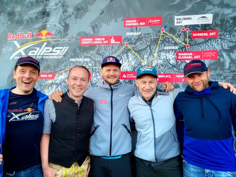 Am Sonntag, 16. Juni 2019 startet die 9. Ausgabe von Red Bull X-Alps, dabei gilt es für 32 Ausnahmeathleten aus 20 Nationen schnellstmöglich über 1100 km alpines Terrain, von Salzburg bis Monaco, ausschließlich zu Fuß oder mit dem Gleitschirm zu überwinden. Aschau i. Chiemgau ist in diesem Jahr wieder offizieller Wendepunkt und zwar der einzige in Deutschland. Bereits am Donnerstagabend beim Prolog in Wagrain-Kleinarl gab es ein letztes Abstimmen zwischen der Aschauer Delegation und dem Organisator der Red Bull X- Alps, Ulrich Grill (Vierter von links) und dem teilnehmenden Profiathleten und einer der Favoriten Paul Guschlbauer (Mitte). Tobias Boley (links) und Jochen Maier (rechts) von der Flugschule Chiemsee und Aschaus Tourismuschef Herbert Reiter (Zweiter von links) sind voller Vorfreude und haben ein abwechslungsreiches Rahmenprogramm für Sonntag, 16. Juni und Montag, 18. Juni 2019 in Aschau i.Chiemgau am Gelände Natur-Freischwimmbad an der Bernauer Straße zusammengestellt.