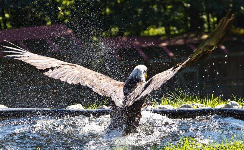 „Grundsätzlich fliegt kein Vogel aus Spaß an der Freude, sondern immer nur, weil er fliegen muss, sei es wegen der Nahrungsaufnahme, sei es wegen der Partnersuche oder um ein eigenes Revier zu finden. Fliegen kostet viel Energie und für wildlebende Greifvögel, die ja nur von Fleisch leben, ist der Tisch nicht so reichlich gedeckt. Ein großer Greifvogel fliegt also nur, wenn er dafür etwas bekommt“. Über eine Stunde bestaunten die Kinder die vielen verschiedenen Greifvögel, die mit Falkner Hannes Lenhart, ihre zahlreichen Kunststücke vorführten. So fingen die Vögel die Köder ihres Trainers, sausten über die Köpfe der Kinder hinweg und zogen einem Kind sogar auf Anweisung des Falkners die Kappe vom Kopf; natürlich bekam es diese Kappe gleich wieder zurück. Beeindruckend war es, als Seeadler Wilma ihre Kreise auf Gipfelhöhe zog und einen Fischkopf aus einem Schwimmbassin fischte. Der Liebling aller aber war der schwarze Milan Sally, der sich aus großer Höhe herabfallen ließ, das Tempo drosselte, zielsicher ein Fleischstückchen im Flug auffing und elegant weiterkurvte.