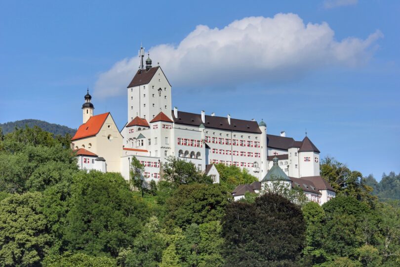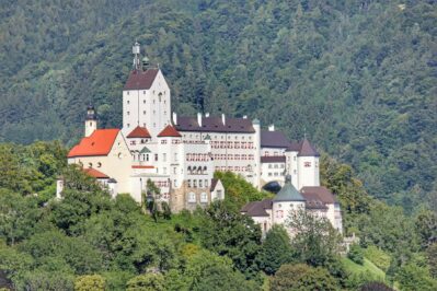 Weithin sichtbar, auf einem Felskegel errichtet, lädt das Schloss Hohenaschau zur Visite ein. Im 12. Jahrhundert als Burg errichtet, dann über die Jahrhunderte immer wieder erweitert und umgebaut, bis zuletzt um 1900 das Gebäude sein jetziges Aussehen bekam.