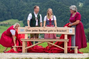 Schreinermeisterin Petra Huber, Aschaus Tourismus-Chef Herbert Reiter, Stefanie Hertel und die Dritte Bürgermeisterin von Aschau Monika Schmid (von links)