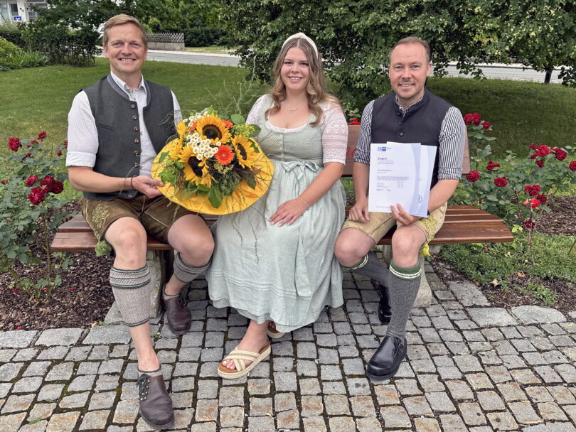 Schwerpunkte der berufsbegleitenden Weiterbildung waren Tourismus Management, Marketing, Unternehmensführung, Recht und Steuern, Rechnungswesen sowie Volks- und Betriebswirtschaft. Die Prüfung zum Tourismus Fachwirt ist eine anspruchsvolle Prüfung, die ein umfassendes Wissen und Fähigkeiten in verschiedenen Bereichen des Tourismusmanagements erfordert. Verständlich, dass dieser besondere Ausbildungserfolg für die junge „Fachfrau im Tourismus“ von Ersten Bürgermeister Simon Frank (links) herzlich beglückwünscht wurde. Lob und Anerkennung erhielt Verena Weinhammer auch vom Leiter der Tourist Info Herbert Reiter (rechts) für ihr zusätzliches Engagement, das ganz im Sinne einer guten Tourismusarbeit zum Wohle der heimischen Anbieter und der kommenden Gäste steht.