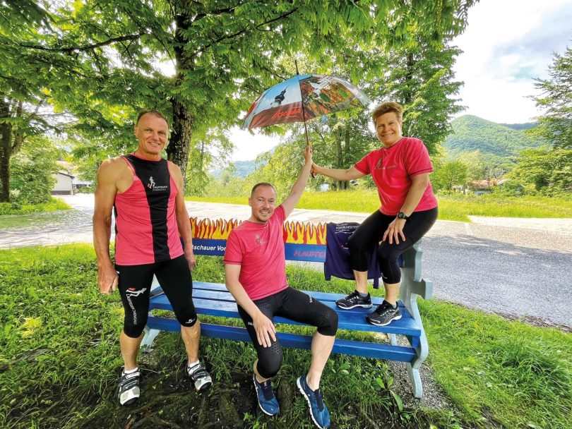 Ohne Zeitnahme, Mitmachen, Spaß haben – Gutes tun, so lautet die Devise. Ein Teil der Einnahmen wird an das „Benedetto-Menni-Nest“, Wohngemeinschaft für junge Menschen mit Behinderung in Aschau, gespendet. Startgebühr 6.- Euro. Die Schirmherrschaft hat Tourismus- und Bankerl-Chef Herbert Reiter übertragen bekommen. Stellvertretend für das Team von Lauffeuer Chiemgau, haben die Organisatoren Christine Heckl (rechts) und Hubert Hinterstocker (links) auf dem Lauffeuer-Bankerl an Herbert Reiter (Mitte) offiziell die Schirmherrschaft übertragen und dabei die letzten Absprachen getroffen. „Eine wunderbare Idee einen Bankerl-Lauf ins Leben zu rufen, bei dem es um einen Genusslauf und Freude in der Bewegung geht und nicht um Zeit“, freut sich der Leiter der Tourist Info Aschau, Herbert Reiter.
