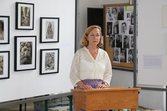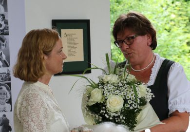 Bürgermeisterin Monika Schmid bedankt sich bei Antonia Gottwald für die umfangreichen Vorbereitungsarbeiten der Ausstellung