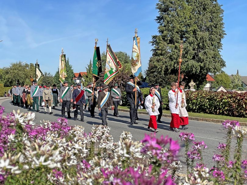 Auch in diesem Jahr ist Corona-Bedingt das Erntedankfest etwas anders abgelaufen ist, doch die Aschauer Flurprozession am Erntedank ist einer der Höhepunkte des Kirchenjahres. Angeführt von den Aschauer Fahnenabordnungen, trug Pfarrer Paul Janßen das Allerheiligste durch die Fluren von Aschau i.Chiemgau und sagte damit Dank für die gute Ernte des Sommers. Die Aschauer Musikkapelle und die K. B. Gebirgsschützenkompanie, Aschauer Vereine zogen zusammen mit der Aschauer Geistlichkeit durch die Straßen Aschaus, Gläubige nahmen in ihrer Festtracht am Gottesdienst und an der Prozession teil. Die Aschauer Pfarrkirche war für diesen besonderen Tag im Jahreskreis mit reichem Blumenschmuck und mit allen Erzeugnissen aus Feld und Garten, mit Obst und Gemüse, Blumen und Früchten festlich durch die Aschauer Bäuerinnen geschmückt. Das Erntedankfest ist eines der ältesten Feste überhaupt. Dieses geht vermutlich auf römisches Brauchtum zurück und wird seit dem 3. Jahrhundert nach Christi Geburt gefeiert.