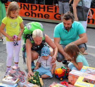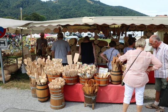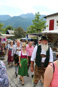 Überall gibt es Brotzeiten oder zumindest kann sich jeder die Brotzeit seiner Wahl bei den Standlleuten zusammenstellen, frisches Bauernbrot am ersten Standl, niederbayerisches Bauerngeräuchertes am nächsten, einen rassen Allgäuer Almkas am dritten, dazu Gurken und Oliven aus Griechenland am vierten und alles andere, was es auf 1000 Kilometer rund um Aschau an Ess- und Trinkbarem gibt.
