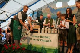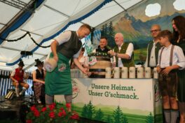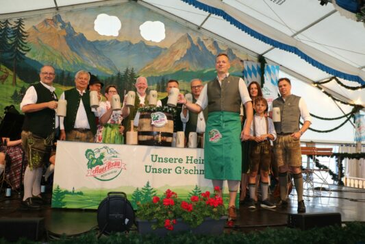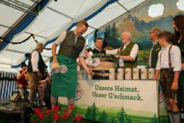 Zwei Schläge brauchte Bürgermeister Simon Frank, bis er den Hahn beim Anzapfen auf der Bühne ohne Spritzen ganz sicher im ersten Fass hatte. Mit dem traditionellen „Ozapft ist“ verkündete er dann den Beginn des 469. Aschauer Marktes. Bürgermeister Frank dankte Festwirt Werner Heinrichsberger und seiner Mannschaft für die Aufstellung und den Betrieb des Festzeltes und wünschte allen einen „schönen Aschauer Markt ohne Vorkommnisse“. Zum 31. Mal steht das Festzelt in diesem Jahr an der Schützenstraße.