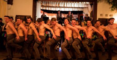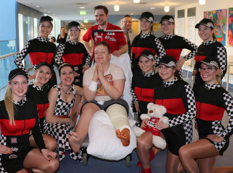 Heiße Disco-Beats wummerten bei der Faschingsdisco durch die ehrwürdige Turnhalle des Behandlungszentrums. Alles was tanzen konnte, tanzte zu dieser Musik und alles was nicht tanzen konnte, tanzte auch oder schaute zumindest zu. Und dann zog das Dutzend der schneidigen rot-weißen Gardistinnen der Aschauer in die Turnhalle, gefolgt vom Prinzenpaar Peter und Katharina.