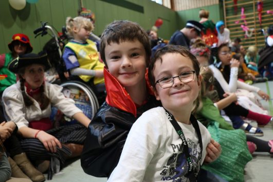 Die Kinder und Betreuer des Aschauer Behandlungszentrums freuten sich in der Turnhalle über den traditionellen Besuch der Aschauer Gilde. Jedes Jahr besucht das regierende Prinzenpaar zur Faschingsdisco Behandlungszentrum und bildet den Höhepunkt des Nachmittags. Mit glänzenden Augen verfolgten alle den Gardemarsch und danach den gefühlvollen Walzer des Prinzenpaares und beim Showtanz klatschen alle begeistert mit. Das Prinzenpaar nahm sich danach Zeit und kümmerte sich um alle Kinder; die Gardemädels schwärmten aus und unterhielten sich mit den Kindern, soweit es die Musik und der Discosound zuließen.