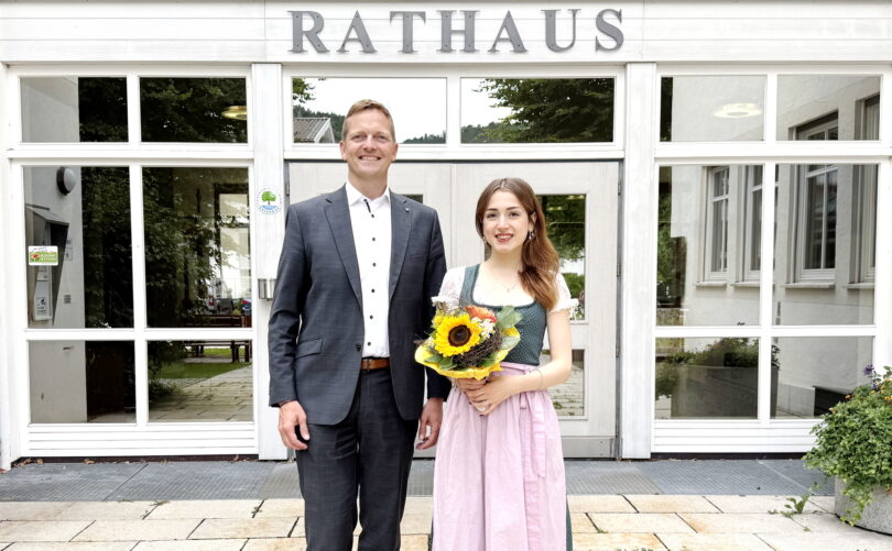 Bericht und Foto: Gemeinde Aschau i. Chiemgau: Erster Bürgermeister Simon Frank honorierte diese Bravourleistung persönlich und gratulierte Luise im Namen der Gemeinde.