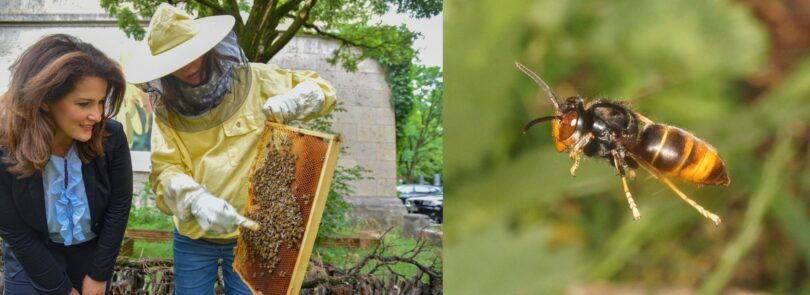 Bericht und Bilder: Bayerisches Landwirtschaftsminiserium – das Archivbild zeigt Staatsministerin Michaela Kaniber gemeinsam mit Imkerin Elisabeth Sommersgutter. Das andere Foto zeigt die Asiatische Hornisse (Vespa velutina) – Foto vom „Institut für Bienenkunde und Imkerei (IBI)“ .