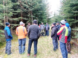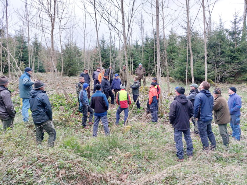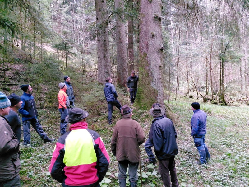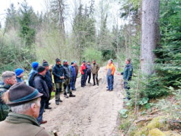 Für Förster Guggenberger waren die Jungwaldpflege, dessen Bezuschussungsmöglichkeiten, der Waldumbau für den Klimawandel, die Holzzuwachsermittlung sowie ein angemessenes Wald-Wild-Verhältnis wichtige Themen seiner Erläuterungen und für die gemeinsame Aussprache vor Ort.