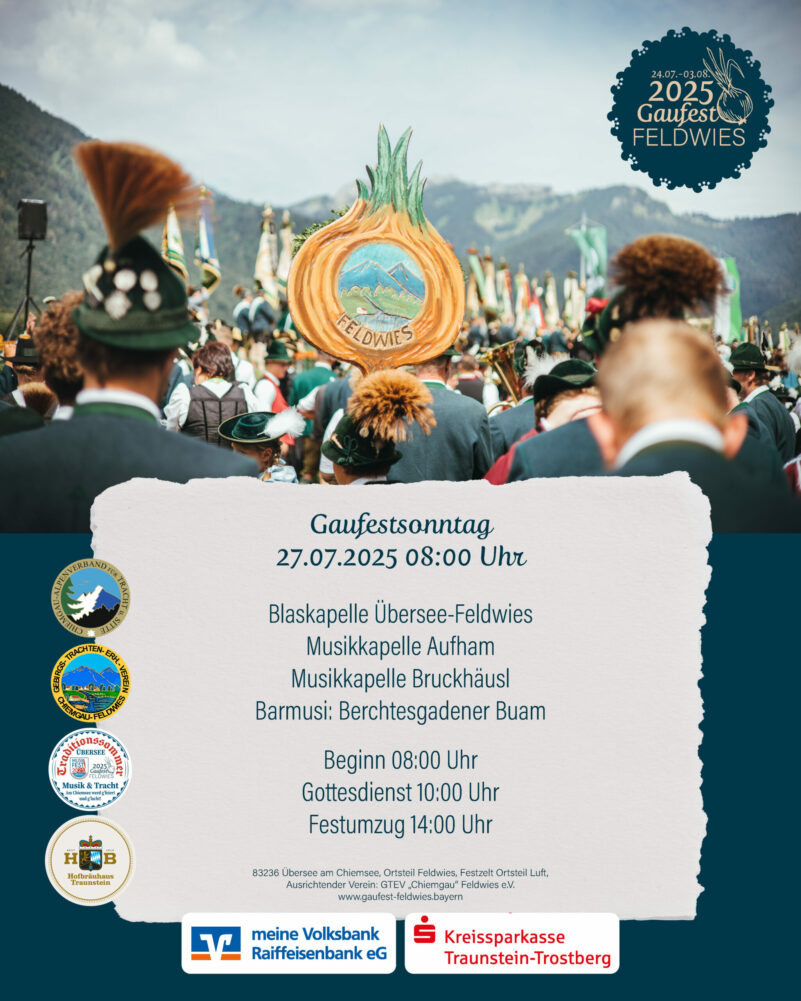 Das diesjährige Gaufest des Chiemgau-Alpenverbandes wird vom Trachtenverein “Chiemgau” Feldwies mit einer Festzelt-Festwoche ausgerichtet.