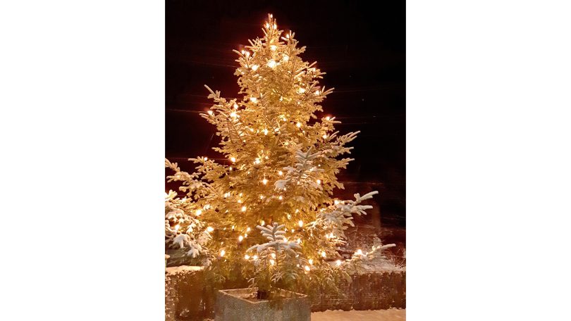 Im festlich-winterlichen Kleid nach den jüngsten Schneefällen zeigt sich der Christbaum in der Dorfmitte von Prien-Atzing. Dieser Baum wurde von einigen Jahren vom Förderverein Atzinger Gemeinde- und Vereinshaus angeregt und wird seither von der Priener Gemeinde nahe dem Gasthaus Stocker aufgestellt.