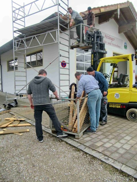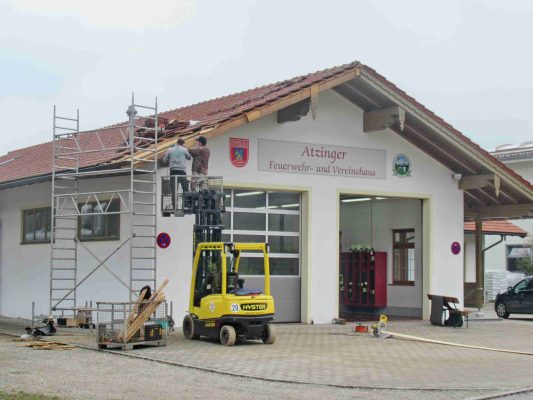 In den Wochen vor Ostern verursachte ein bislang unbekannter LKW-Fahrer am Atzinger Feuerwehrhaus einen Schaden am Dach, der in den Osterferien von Atzinger Feuerwehrkameraden wieder behoben wurde. Der Schaden betraf vor allem den Sparren und die Windbretter auf der linken Gebäudeseite und hätte bei Firmenvergabe laut Angebot rund 7.000 Euro betragen. Der Fall kam bei der Polizei zur Anzeige, dennoch konnte der Verursacher nicht ermittelt werden. Da es für diese Situation keinen Versicherungsschutz gab bot die Feuerwehr Atzing der Gemeinde Prien an, die Holz- und Malerarbeiten selbst und ehrenamtlich zu machen. Kommandant Paul Huber wurde dabei von Robert Höhensteiger, Guido Obermaier, Stephan Meier und (Gemeinderat) Gerhard Fischer unterstützt. Das nötige Holz spendierte Zweiter Vorstand Hans Fischer (Sägewerk Rinser) und das Farbmaterial spendierte Malermeister Andreas Hötzelsperger. Für den zweitägigen Arbeitseinsatz bedankte sich die Gemeinde Prien bei der Feuerwehr mit einer Brotzeit- und Getränkespende. Die nächsten Termine der Feuerwehr Atzing sind am Samstag, 7. Mai die Jahresversammlung und am Pfingstmontag, 6. Juni der musikalische Frühschoppen vor dem Feuerwehrhaus. Dieser beginnt mit Wildenwarter Blasmusikanten um 10 Uhr sowie mit einem Kinder- und Jugend-Programm.