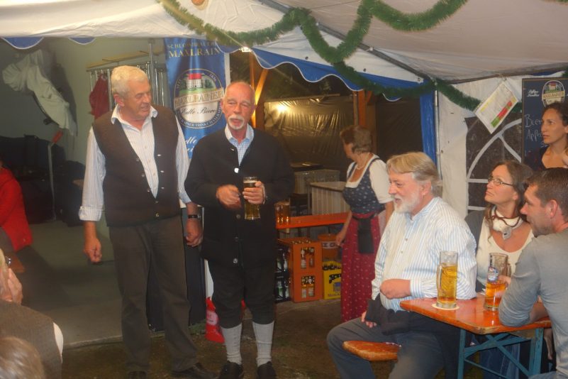 Eine Bürger-Initiative der geselligen Art könnte man das Bemühen der Einwohner von Prien-Atzing bezeichnen, deren Anliegen es ist, das ehemalige Moorbad wieder für Feuerwehr-Lösch-Einsätze tauglich zu machen. Bislang ist dieses Bemühen aufgrund der Bodenuntersuchungen und aufgrund der zu erwartenden Kosten gescheitert. Mit einem „See- und Nachbarschafts-Fest“ unternahmen die Weiher-Anwohner nunmehr den Versuch, für die Tilgung der zu erwartenden Kosten ein Startkapital zu haben. Dieses Vorhaben ist in jedem Fall gelungen, denn in dem tags zuvor vom Sturm weggefegten und dann erneut aufgestellten kleinen Festzelt fanden sich überaus viele Atzinger und weitere Bewohner aus den Nachbarortschaften ein, unter ihnen auch Anwohner und Dritter Bürgermeister Alfred Schelhas. Jakob Steiner als Mitglied des Löschweiher-Planungs-Komitees hieß die Besucher willkommen. Er erinnerte dabei daran, dass heuer in Höhenmoos und auf dem Samerberg zwei große Bauernhofbrände waren und dass beide Male ortsnahe Löschweiher von hoher Wichtigkeit waren. Der aus Bremen stammende Uwe Richter, dessen Vater 1961 das nunmehr von seiner Familie bewohnte Haus am Weiher erwarb und dem das Weiher-Grundstück gehört, will die Löschweiher-Initiative ebenfalls unterstützen. In einem kurzen Grußwort bezeichnete er den Weiher als Kulturgut, da darin im ehemaligen Atzinger Moorbad schon Königliche Hoheiten gebadet hatten sowie als schützenswertes Biotop. „Ein hergerichteter Löschweiher könnte auch als Regenrückhaltebecken oder für das Eisstockschießen eine Aufgabe bekommen“, so Uwe Richter. Gemütlich und gesellig verlief das „See-Fest“ im Festzelt. Da dieses Zelt von Verleiher Andi Stoib kostenlos zur Verfügung gestellt wurde und da die Brauerei Maxlrainer ebenfalls den Veranstaltern entgegenkam, dürfte sich aus dem Engagement der Atzinger und Ehrenamtlichen ein erstes und gutes Startkapital ergeben. Einen angenehmen Beitrag leisteten auch die zehn Mitglieder der „Ganz Oafach-Musi“ aus den Reihen der Wildenwarter Blaskapelle, diese spielten den ganzen Abend unentgeltlich und fleißig auf. Musiker Andreas Willmann versteigerte unterhaltsam selbst gebackenes Brot, auch dieser Versteigerungs-Erlös kommt dem geplanten Weiher-Vorhaben zugute. Als Nächstes wollen die Veranstalter und Initiatoren mit der Gemeinde Prien und mit der örtlichen Feuerwehr das Gespräch suchen.