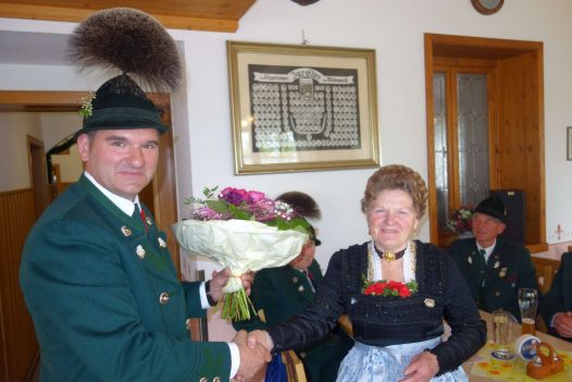„Der heurige Trachtensommer bietet viele Gelegenheit, dass wir uns daheim und auswärts mit der Tracht zeigen und uns an den vielen Festlichkeiten erfreuen können“, so der Vorstand, der als nächste Termine für alle Vereinsmitglieder die Beteiligung beim 125jährigen Jubiläum des Trachtenvereins „Chiemgauer“ München am Samstag, 11. Mai (Busabfahrt um 11 Uhr bei vorheriger Anmeldung) und beim Bezirksmusikfest am Sonntag, 2. Juni in Prien mit der Priener Blaskapelle als Gastgeber (10 Uhr Gottesdienst, anschließend Festzug) bekanntgab. Die traditionelle Maiandacht in Arbing ist heuer am Freitag, 17. Mai, das 6-Vereine-Preisplatteln am Sonntag, 14. Juli im König-Ludwig-Saal in Prien wird vom Atzinger Trachtenverein ausgerichtet werden. Das Gautrachtenfest in Bernau am Sonntag, 28. Juli wird der Atzinger Verein mit der Bundesmusikkapelle Ebbs sowie mit einem Motiv- und Leutwagen besuchen. Was sich seit der Wiederbelegung des Atzinger Trachtenvereins nach dem Zweiten Weltkrieg alles getan hatte, darüber berichtete Klara Schlosser, die aus allen alten Protokollbüchern die Eintragungen in altdeutscher Schrift in heutige Leseform abgeschrieben hat. In ihren Erinnerungen waren unter anderem 1954 der erste Jahrtag mit Wildenwart, 1958 der Wechsel vom Gauverband I zum Chiemgau-Alpenverband und das erste Vereinspreisplatteln, 1962 das erste Waldfest im Buchenwald von Munzing sowie 1965 das erste 6-Vereine-Preisplatteln (in Atzing) festgehalten. Mit Applaus und Blumen bedankte sich der Verein für die Fleißarbeit und für das Vortragen bei Klara Schlosser. Bei einer Nachwahl erklärte sich Paul Schlosser junior für die Übernahme des stellvertretenden Bereichsleiters „Vereinshaus“ bereit. Für inzwischen 50jährige Mitgliedschaft bedankte sich Vorstand Schlosser bei Hans Freund mit einer Urkunde und sagte dabei: „Du warst von Kindheit aktiv dabei, Du hilfst bei allen notwendigen Arbeitsmaßnahmen mit und die sorgst auch für die Besorgung von Gamsbärten für uns jüngeren und älteren Trachtler, dafür gebührt Dir unser Dank“.