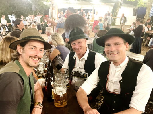 Zur fast märchenhaften Waldfeststimmung trugen unter anderem die Blaskapelle Wildenwart und die Hafenstoana Alphornbläser aus Bernau bei. Die vier Männer und zwei Frauen des Alphornsextetts spielten nach Einbruch der Dunkelheit gegenüber des Festplatzes, was eine der Besonderheiten der Waldfeste vom Trachtenverein „Daxenwinkler“ ist. Weitere Auftritte zeigten die Kinder-, Jugend- und Aktivengruppen mit Schlag- und Marschplattlern sowie mit einigen Figurentänzen. Auch die Stücke der etwas verjüngten und lautstark auftretenden Atzinger Goaßlschnalzergruppe passten in das Waldfestgeschehen. Trachtenvorstand Konrad Huber zeigte sich überaus zufrieden ob des guten Besuchs und der starken Mithilfe der ehrenamtlich tätigen Vereinsmitglieder. Sein besonderer Willkommensgruß galt zahlreichen Vereinsvorständen aus Prien, Atzing und Wildenwart, Priens Ehrenbürger Michael Anner senior, Frasdorfs Bürgermeister Daniel Mair sowie Priens Pfarrer Philipp Werner, der erstmals ein Atzinger Waldfest besuchte und sich von der außergewöhnlichen Fest-Atmosphäre überrascht zeigte. Schon des öfteren zu Gast bei einem Buchenwaldfest war Baron Ludwig von Cramer-Klett mit seiner Familie und seinen Freunden, er resümierte: „Schon als Kind als ich mit meinem Vater dabei sein konnte, war ich von diesem Platz und von der Stimmung fasziniert“. Gut angenommen wurden von den Besuchern die Angebote aus der Flötzinger-Wald-Schänke, die Fleisch- und Wurst-Köstlichkeiten von der Große-Grill-Küche, die Kaffee- und Kuchenauswahl und zu späterer Stunde die Bar der Daxenwinkler inmitten der Buchen. Ein zweites für Mittwoch, 23. Juli angesetztes Waldfest wurde bereits wegen der ungünstigen Wetterprognosen abgesagt. Ein neuer Termin wird kurzfristig und entsprechend der Wetter-Entwicklung festgelegt, so dass es in diesem Sommer noch einmal ein Atzinger Waldfest im Buchenwald von Munzing geben soll.