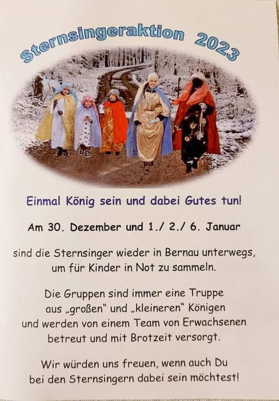 Die Gemeinde Bernau informiert zu den Vorbereitungen für die Entsendung der Sternsinger – solche sind wieder gesucht!