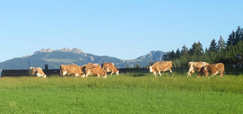 Feierabend machen und haben ist immer gut – besonders schön ist er auch für die Tierwelt, wenn Landschaft und Wetter mitmachen. So wie auf diesem aktuellen Foto, das in Prien-Gaishacken mit der Kampenwand entstand und erinnern lässt, dass es vor einigen Jahren einmal beim Almvieh eine “Miss Kampenwand” gab.