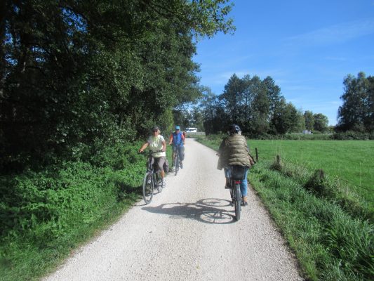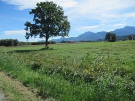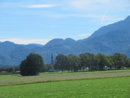 Wer es ganz ruhig haben will und den Autolärm am direkt zwischen Chiemsee und Autobahn verlaufenden Uferweg zwischen Rottspitz und Rödlwies meiden will, kann auch vom Chiemsee-Moos auf der Mühlenstraße, einer 3 km langen schnurgeraden und nur von den wenigen Anliegern befahrenen Asphaltstraße, nach Feldwies fahren. Schöne Chiemseeblicke und am Horizont die Silhouette der Chiemgauer Alpen sind auch hier garantiert, wie die aktuellen Fotos von einem Radl-Ausflug zwischen Prien und Feldwies zeigen.