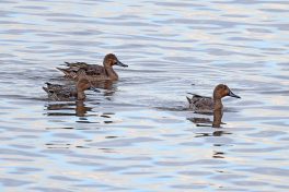 - Neben Blässhühnern sind auch viele Stockenten und Schnatterenten auf dem Wasser.