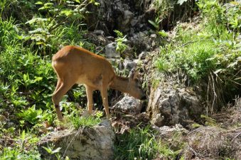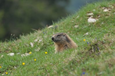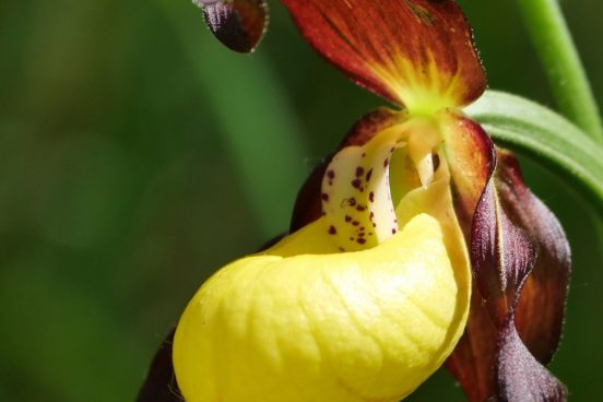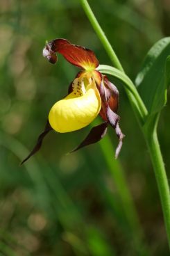 Mit zunehmender Sonne lassen sich dann auch Murmeltiere, Rehe und Schmetterlinge sehen. Beim Abstieg konnte ich in einem offenen Hangwald noch den seltenen Frauenschuh sehen.