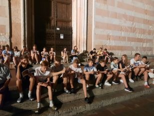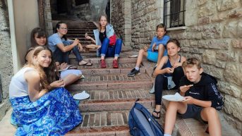 Beginnend mit dem Elternhaus von Franz von Assisi bis hin zur Basilika San Francesco – in der sich sein Grab befindet- durfte die Gruppe Orte des Lebens und Wirkens des Franziskus kennenlernen. An den verschiedenen Stationen wurde gebetet, gesungen oder die eine oder andere Legende von Reiseleiter Diakon Günter Schmitzberger gelesen. Große Motivation weckte das Assisi-Quiz bei den Jugendlichen. In diesem mussten sie aber nicht nur theoretische Fragen beantworten, sondern auch ihre Aufmerksamkeit auf viele schöne Dinge lenken, die es während der Tage zu sehen gab. Einen besonderen Abschluss der Fahrt war der gemeinsame Gottesdienst in der Eremitage Carceri unterhalb des Monte Subasio mit Pfarrer Baumgartner und Diakon Schmitzberger.