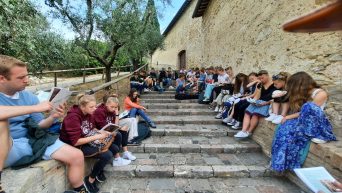 Jugendfahrt 2022 des Pfarrverband Rohrdorf – Am Pfingstmontag startete die Gruppe der Jugendfahrt mit 12 Erwachsenen und 29 Jugendlichen aus dem Pfarrverband Rohrdorf um 6.30 Uhr nach einer motivierenden Morgenandacht mit dem Bus nach Assisi. Nach einer zehnstündigen Reisezeit – bestens und sicher chauffiert von unserem Bernd Rieder – begann mit der Abendandacht eine spannende und gemeinschaftliche Woche. Zum täglichen Auftakt gab es in der Morgenandacht immer ein eigenes Motto, welches in der Abendandacht noch einmal aufgegriffen und vertieft wurde.