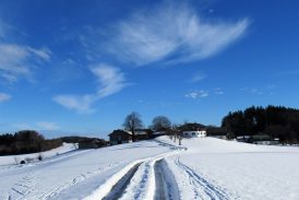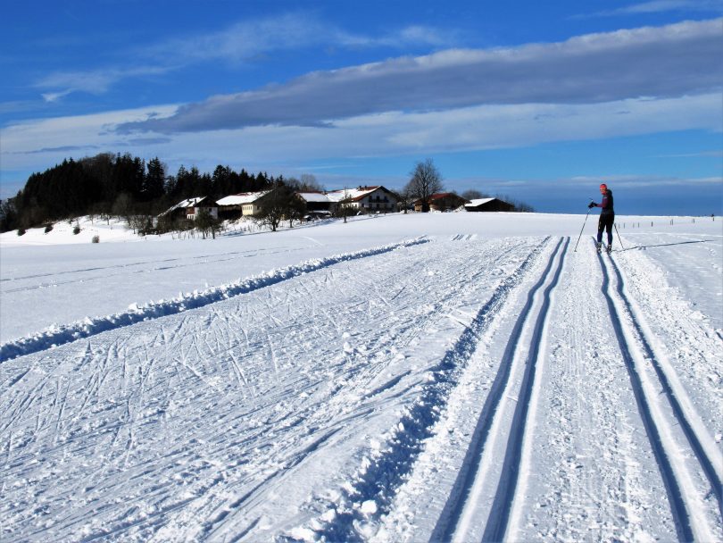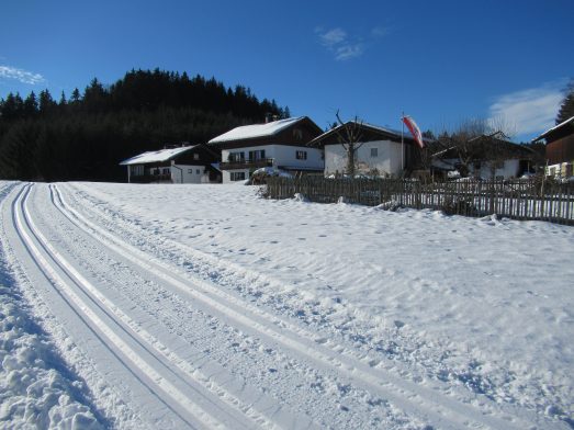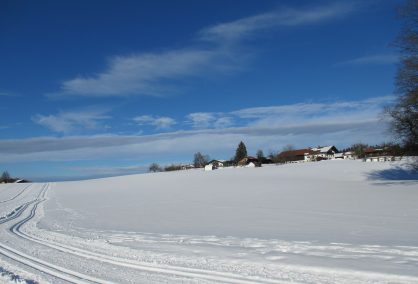 Beim ersten mal musste ich mich durchfragen, was gar nicht so einfach war, denn nicht einmal alle Einhemischen wissen den Einstieg genau. Heute präsentiert sich die Loipe bestens gespurt, auch für Skater ist gewalzt. Ein paar Abfahrten sind recht flott, aber die Spur ist griffig und man kann es sausen lassen. Gefahr, durch herabfallende Äste getroffen zu werden, besteht auch nicht, denn es geht durchwegs durch offenes Gelände, vorbei an den Weilern Arbing, Munzing, Mupferting, Elperting , Stetten, Stupfa, Siegharting, und Gaishacken bis Prutdorf, wo die Loipe nach einer Schleife wieder zurückgeht zum Ausgangspunkt.