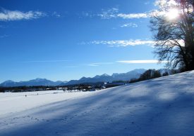 Heuer ist es mal wieder soweit, von Prien aus bin ich in 10 Minuten in Atzing, wo die Loipe an der Arbingerstraße bei einem Fußballplatz beginnt. Das muss man allerdings wissen, denn Wegweiser “Zur Loipe” gibt es nicht. Parken kann man hier heute wegen hoher Schneeberge nicht, aber am Parkplatz vom Gasthof Stocker ist noch alles frei.