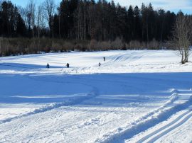 Nur wenig bekannt ist, daß es auch in Prien eine gespurte Loipe gibt, und zwar eine wunderschöne, auf der man oft sogar ziemlich alleine unterwegs ist. . Es liegt wohl daran, daß nur alle paar Jahre genug Schnee liegt um die Loipe zu spuren.