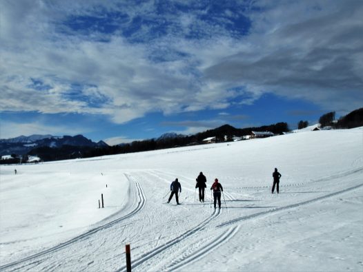 Langlaufen im Chiemgau wird immer beliebter und der heurige schneereiche Winter trägt erst recht dazu bei, daß sich immer mehr Leute auf den zahlreichen Chiemgauer Loipen tummeln. So waren auch heute auf der Samerberger Loipe, einer der landschaftlich schönsten Loipen im Chiemgau, viele Langläufer bei besten Schneeverhältnissen unterwegs, darunter erstaunlich viele Skater. Und das Wetter spielte auch mit, denn entgegen der Prognosen der Meteorologen zeigte sich am Sonntag die Sonne länger als erwartet, wie die aktuellen Bilder zeigen.