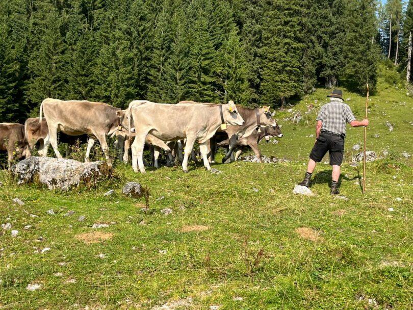 Begleitet von ihren Betreuern zogen die schon etwas älteren Jungtiere von der Grubenalm hinunter zur Stubenalm – ein Almauftrieb, der zeigt, wie eng Tradition und Natur im Berchtesgadener Land miteinander verbunden sind. Die Fotos fangen diesen besonderen Moment ein: neugierige Kälber, fürsorgliche Almbauern und eine Landschaft, die schöner kaum sein könnte.