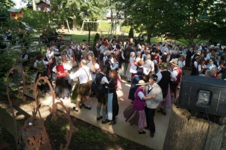Am kommenden Sonntag, 6. Juli 2025, ist es wieder soweit – nur für das Maxlrainer Morgentanzl wird sich der Wirtsgarten des Bräustüberls der Schlossbrauerei Maxlrain in einen großen Tanzboden verwandeln, auf dem die Aichacher Bauernmusi in ihrer großen Besetzung mit acht Musikanten ab sechs Uhr zünftig zum Volkstanz aufspielen wird. Denn das ist das „Maxlrainer Morgentanzl“, das heuer zum 18. Mal stattfinden wird: ein frühmorgendlicher, alpenländischer Volkstanz unter freiem Himmel, gemeinsam veranstaltet vom Kulturförderverein Mangfalltal in Maxlrain e.V. und vom Volkstanzkreis Rosenheim e.V.