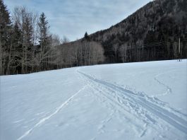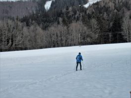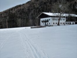 Nun ja, einfach mal Ausprobieren! Ich fahre zum Wanderparkplatz Aigen und habe Glück: mein Tacho zeigt genau 15 km an und es ist eine wunderschöne Winterlandschaft hier am Fusse der Kampenwand, wie die aktuellen Fotos zeigen. Zahlreiche Wanderer, Skitourengeher und Schlittenfahrer sind unterwegs auf der Strasse hinauf zur Maisalm, auf der man rasant herunterrodeln kann. Die Loipe ist nicht gespurt, im Wald liegt zu wenig Schnee für das Loipengerät. Aber ein einsamer Langläufer ist auf einer wilden Spur unterwegs und dreht eine Runde um den alten Bauernhof in Aigen. Ich laufe auch ein paar Runden und freue mich, Langlaufen scheint auch für die nächsten Wochen gesichert!