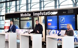 Ministerpräsident Dr. Markus Söder, MdL, Bundesgesundheitsminister Jens Spahn, MdB, und Bayerns Gesundheitsministerin Melanie Huml, MdL, haben sich am 11. Dezember 2020 bei Nürnbergs Oberbürgermeister Marcus König über den Aufbau des Corona-Impfzentrums Nürnberg informiert. Ministerpräsident Dr. Markus Söder: „Die heutigen Zahlen sind so hoch wie nie. Wir brauchen einen grundlegenden Lockdown so schnell wie möglich. Jeder Tag zählt. Warum zögern, wenn wir wissen, dass es notwendig ist? Deshalb: Jetzt alles vorziehen und entschlossen handeln. Wir müssen noch vor Weihnachten runterfahren.“