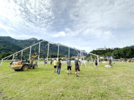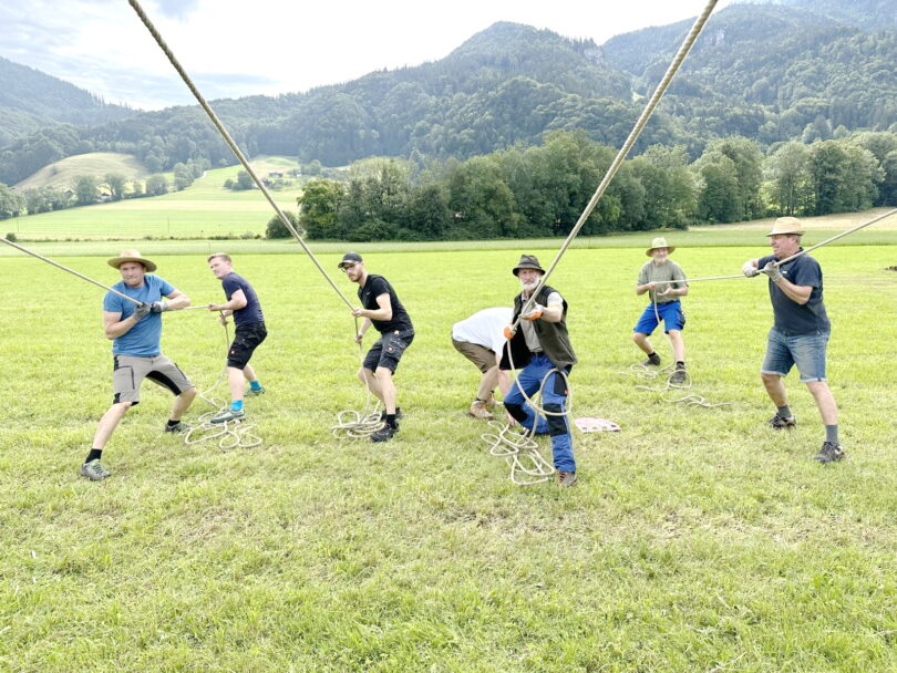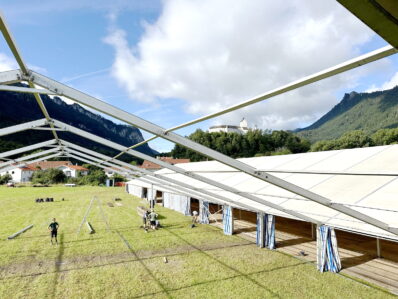 Die Vorfreude auf das Gaufest 2024 in Hohenaschau steigt, und die Vorbereitungen laufen auf Hochtouren. Das große Festzelt mit Platz für 4500 Gäste steht bereits auf der Festwiese unterhalb von Schloss Hohenaschau. Tatkräftig unterstützt von den Hohenaschauer Trachtlern sowie zahlreichen Freiwilligen aus dem Ort und der Region, wurden auch die Nebenzelte für Bar, Kaffee & Kuchen, Küche und Schänke bereits errichtet.