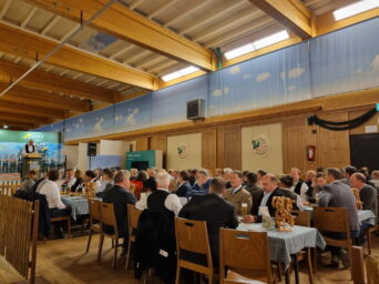 Da aber das eigene Zuhause vor allem eines ist: Vertrauenssache, bot die breit aufgestellte Holzbaumesse Rosenheim letztes Wochenende die einmalige Gelegenheit, den Mitgliedsbetrieben der Zimmerer-Innung Rosenheim, Industrie-und Baustoffunternehmen und Messepartnern persönlich alle Fragen rund um das eigene Projekt zu stellen. Dass auch heute noch der persönliche Kontakt und ein Gesicht hinter dem Gewerk bzw. Baustoff Holz besonders wichtig sind, zeigten die zahlreichen Besucher aus der Region, die am Samstag und Sonntag in die Auerbräu Festhalle strömten. Denn bei allen Onlinemöglichkeiten der Bauwirtschaft entscheidet am Ende doch das eigene, gute Bauchgefühl. Damit der Holzbau in der Region auch in Zukunft so erfolgreich bleibt, lag ein besonderes Augenmerk der Messe auch auf dem Thema Aus- und Weiterbildung. Mit der Berufsschule Bad Aibling und der Fachschule Rosenheim für Holz- und Bautechnik präsentierten sich gleich zwei Schulen und informierten über alle Berufsmöglichkeiten rund um den Holzbau. Großen Anklang fanden dabei die aufgebauten Werkbänke der Zimmerer-Abteilung an der Berufsschule Bad Aibling. Lehrer sowie Schüler zeigten hier zwei Tage lang die ZimmererAusbildung von ihrer praktischen Seite. Da zukunftsfähiges Bauen in der Region nur gemeinsam und in einem gut ausgebauten Netzwerk funktioniert, trafen sich Aussteller und Branchenvertreter schon am Freitag zum gut besuchten Festabend in der Auerbräu Festhalle. Ähnlich wie bei einem Uhrwerk müssen