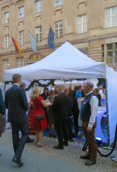 Bevor Ise Aigner danach den traditionellen Fassanstich vornahm, wünschte sie den Gästen einen geselligen Oktoberfest-Auftakt mit den Worten: „… so begrüße ich Sie nun heute am größten Stammtisch von Berlin, hier in der Bayerischen Landesvertretung, mit dem Motto: Leben und leben lassen“