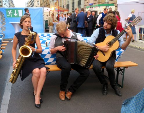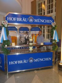 Das traditionelle Oktoberfestbier wurde dieses Mal wieder vom Staatlichen Hofbräuhaus geliefert und persönlich vom Hofbräuhaus-Direktor Dr. Micheal Möller mit ausgeschenkt. Dazu gab es deftige Bayerische Schmankerl, wie Käsepätzle, Steckerlfisch, Hendl, Brezen, Kaiserschmarrn, sowie Leberkäs- und Fischsemmeln und einiges mehr. Für die musikalische Umrahmung sorgten die „Musikkapelle Elbach“, die „Großstadt Boazn“ aus München und DJane Christin Glock.