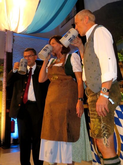 Auf dem Oktoberfest dreht sich nun ja auch alles um den edlen Gerstensaft, dem Bier. Mit Stolz wies Ilse Aigner darauf hin, dass Bayern die größte Brauereidichte hat. Jede 2. Brauerei hat ihren Sitz in Bayern. Dazu führte sie ergänzend aus, dass zum Genuss des Bieres ja auch ein „Biertisch“ gehört. Es ist im Grunde genommen ein „Ort der Begegnung“. Als „Stammtisch“ gehört ist dieser Tisch zu den wichtigsten Einrichtungsgegenständen jedes Bayerischen Wirtshauses.